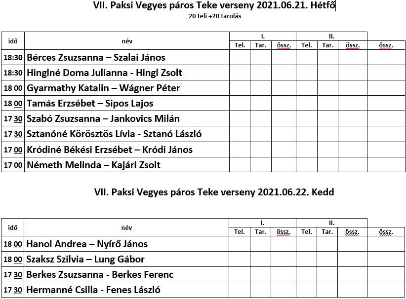 2021. évi Vegyes páros Tekeverseny
