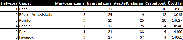 A tabella állása a következő: