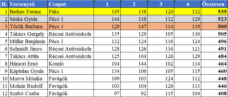 Az elért eredmények az alábbi képen láthatók. Gratulálunk a dobogósoknak!