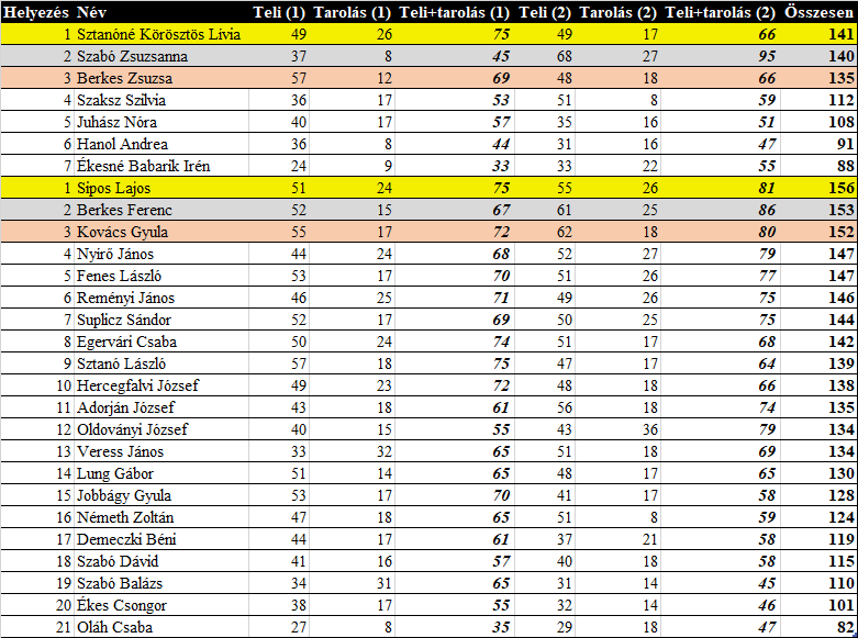 A verseny az alábbi eredményekkel zárult. Gratulálunk a dobogósoknak!