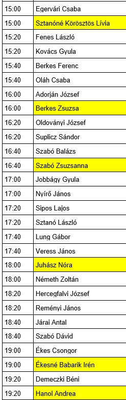 Pályabeosztás az alábbi táblázatban!