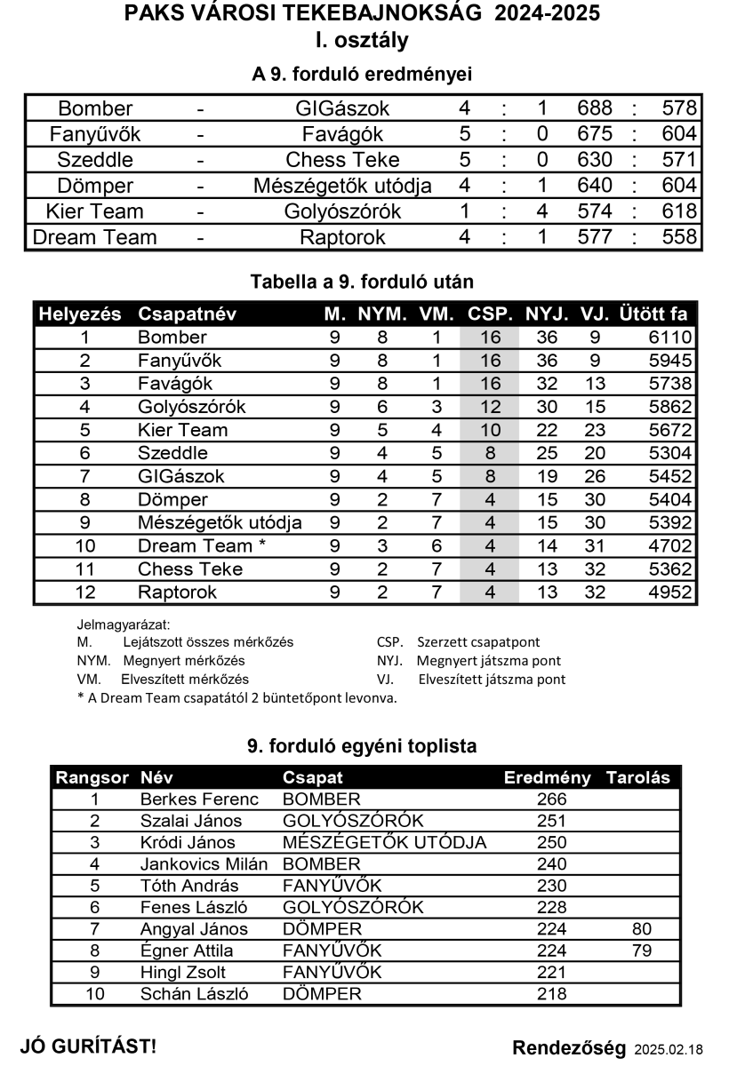 A forduló legizgalmasabb csatájának a Fanyűvők-Favágók mérkőzés ígérkezett, de mivel könnyed Fanyűvők győzelem született, az igazi izgalmak az utolsó két fordulóra maradtak. A dobogó első 3 helyén álló csapatok (Bomber, Fanyűvők, Favágók) azonos csapatfával állnak, sőt az első két helyen a játszmaarány is azonos. Matematikailag a dobogóra még odaérhet a Golyószórók is, de erre csak akkor van valós esélyük, ha az előttük álló csapatok közül legalább 1 csapat mindkettő hátralévő mérkőzését elveszti.