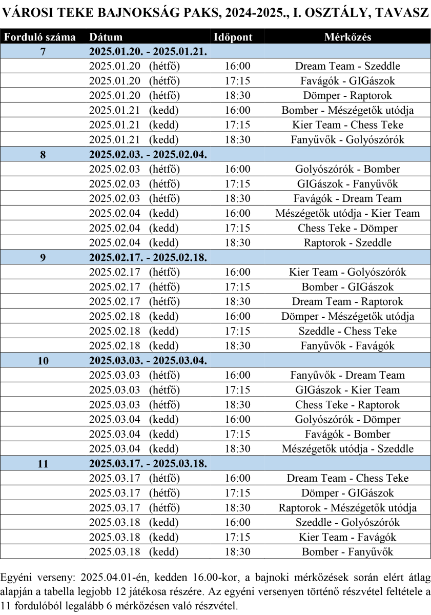 I. osztály tavaszi sorsolás II. osztály tavaszi sorosolás