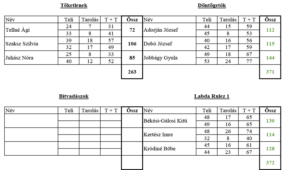 Töketlenek – Döntögetők (0:5, 263–371)