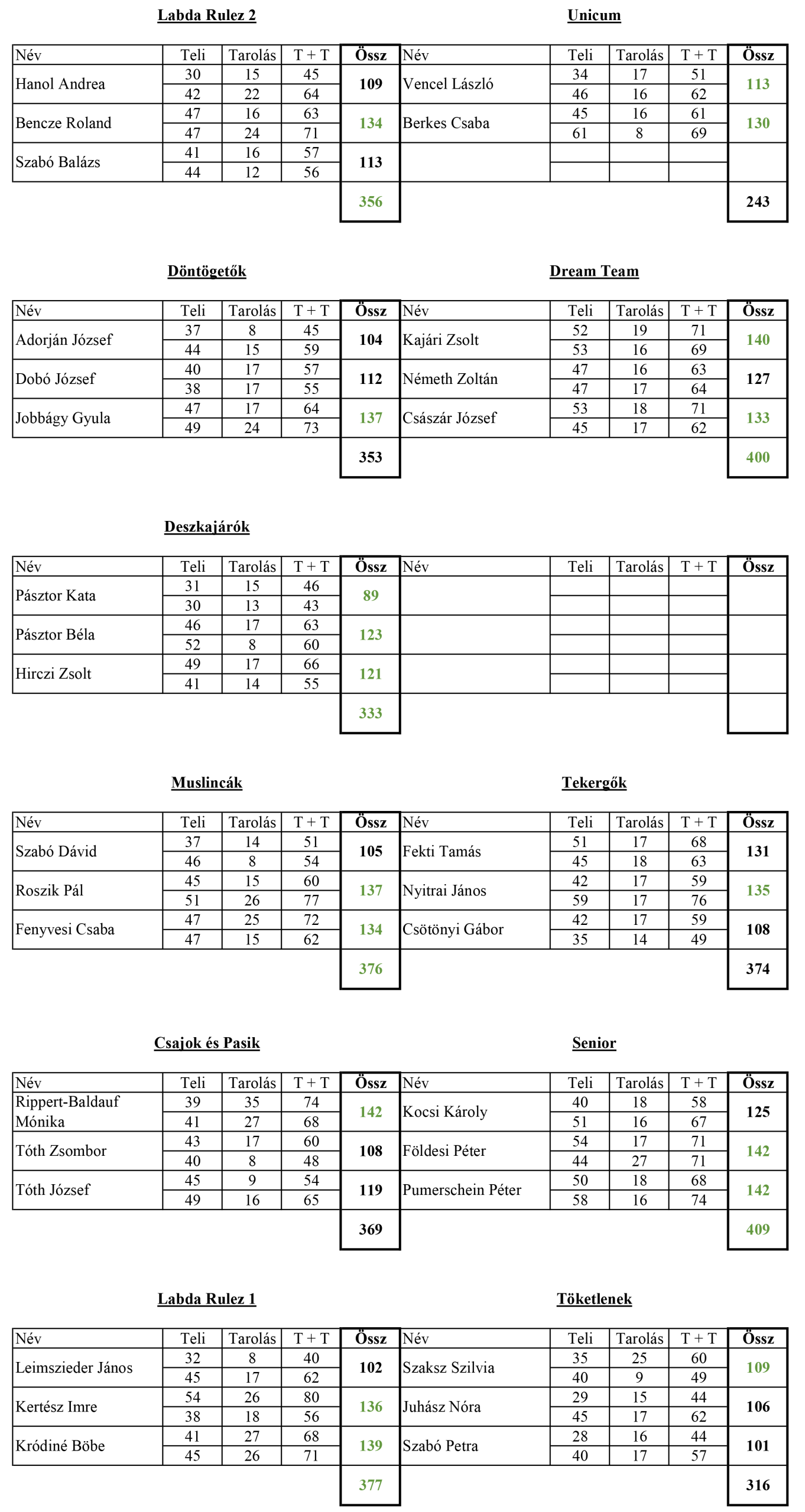 Csajok és Pasik – Senior 1:4 (369 : 409)