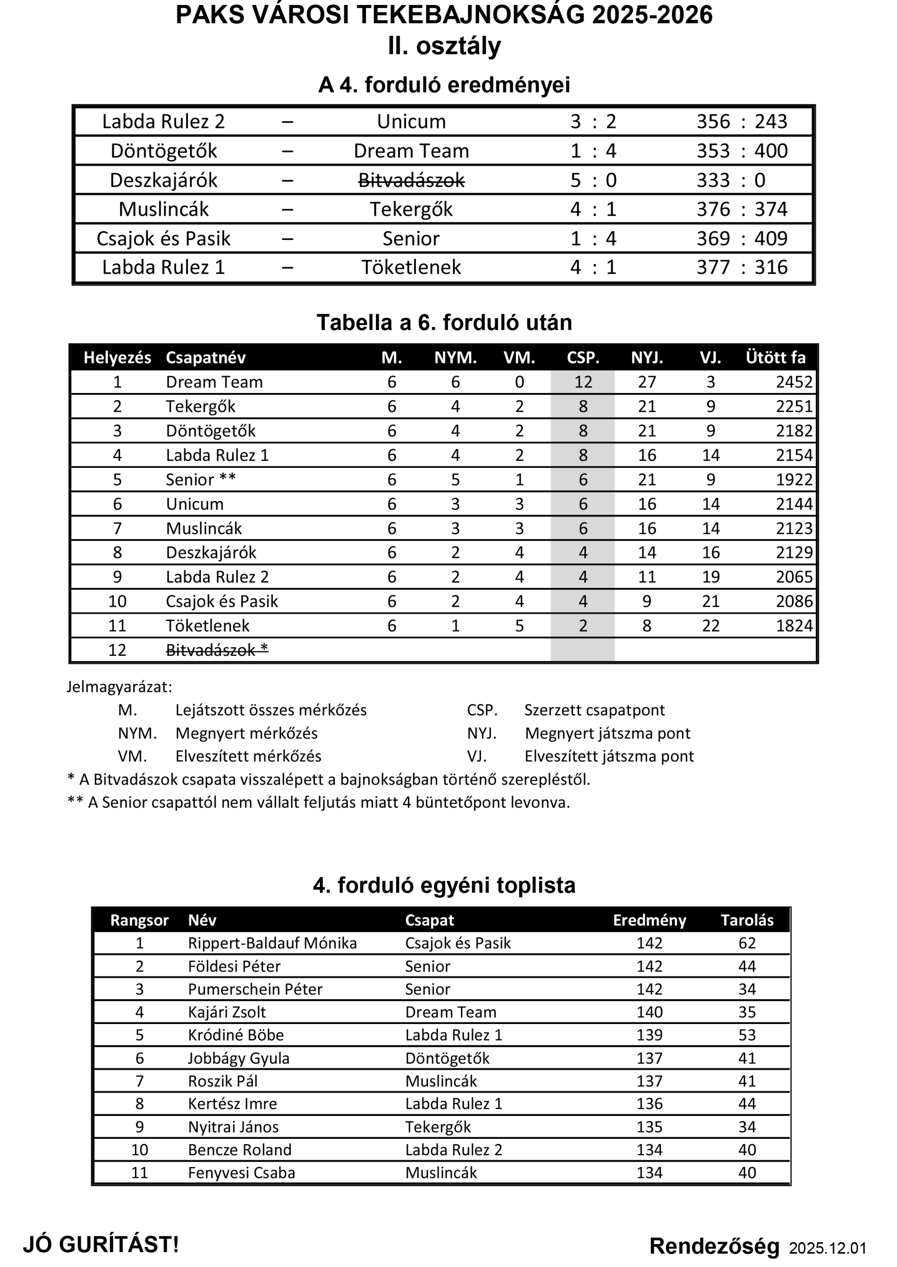 Az elírt jegyzőkönyvért ezúton is elnézést! Bár a helyszínen nem reklamált senki, az eredmények az itt közöltek szerint helyesek!
