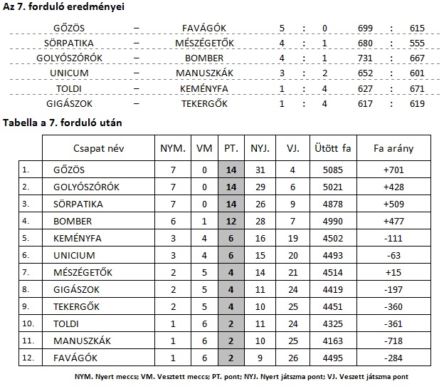 Az első tavaszi forduló, a GOLYÓSZÓRÓK csapatát leszámítva, meglehetősen idény eleji formával indult, melynek hála a rangadót megnyerték a BOMBER ellen. A TEKERGŐK elmozdultak a tabella utolsó helyéről, a GIGÁSZOK két fás legyőzésével, a FAVÁGÓK csapatának átadva a sereghajtó szerepet.